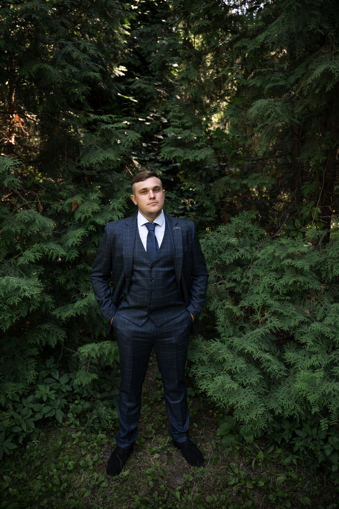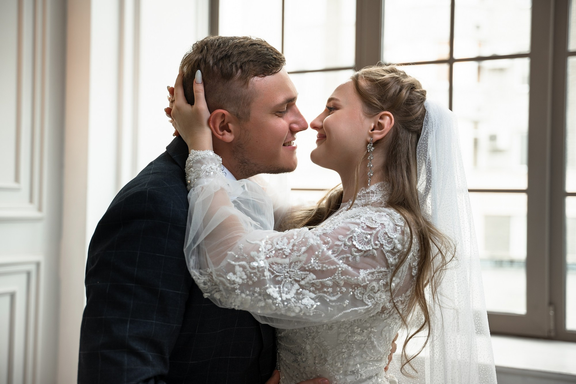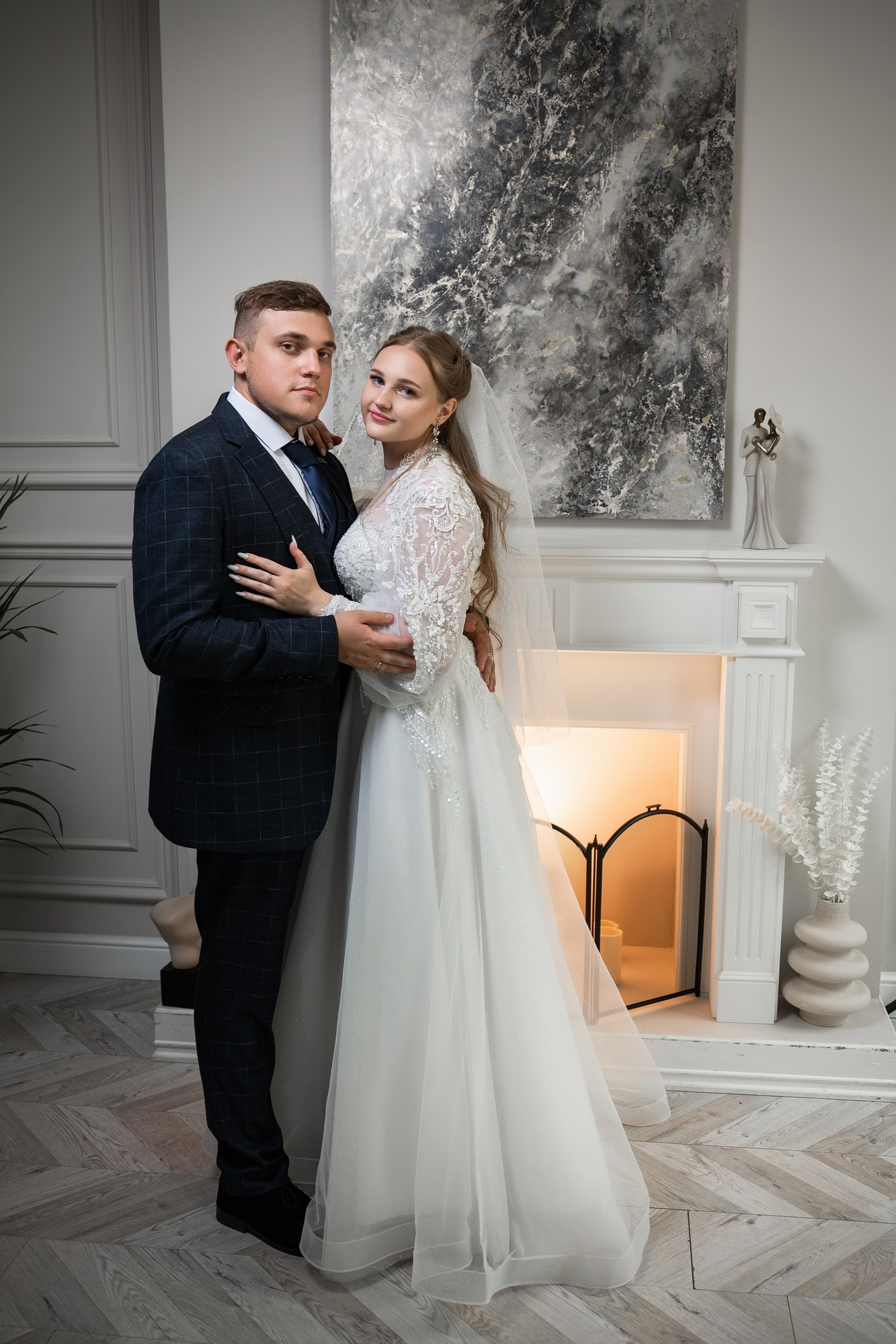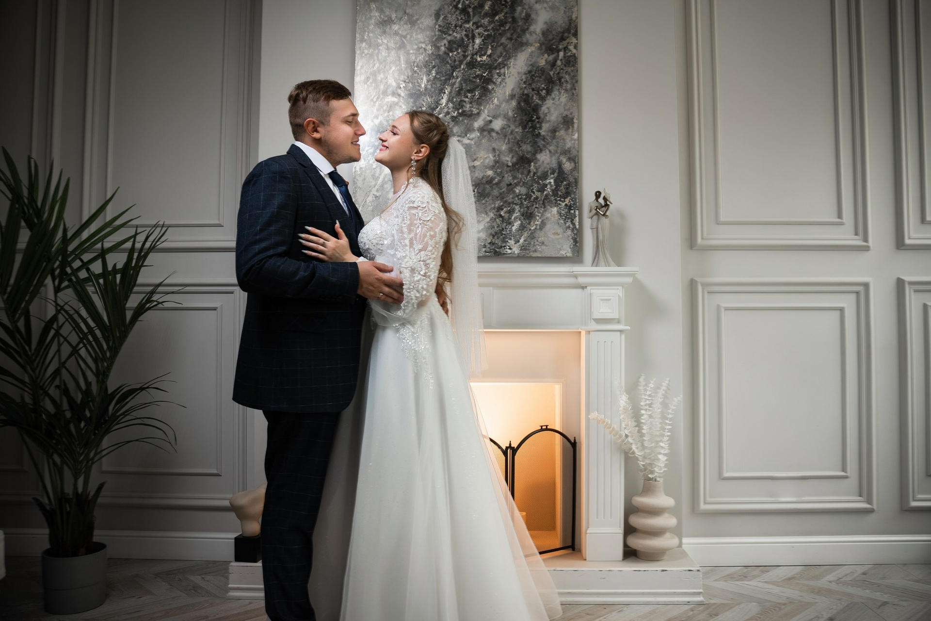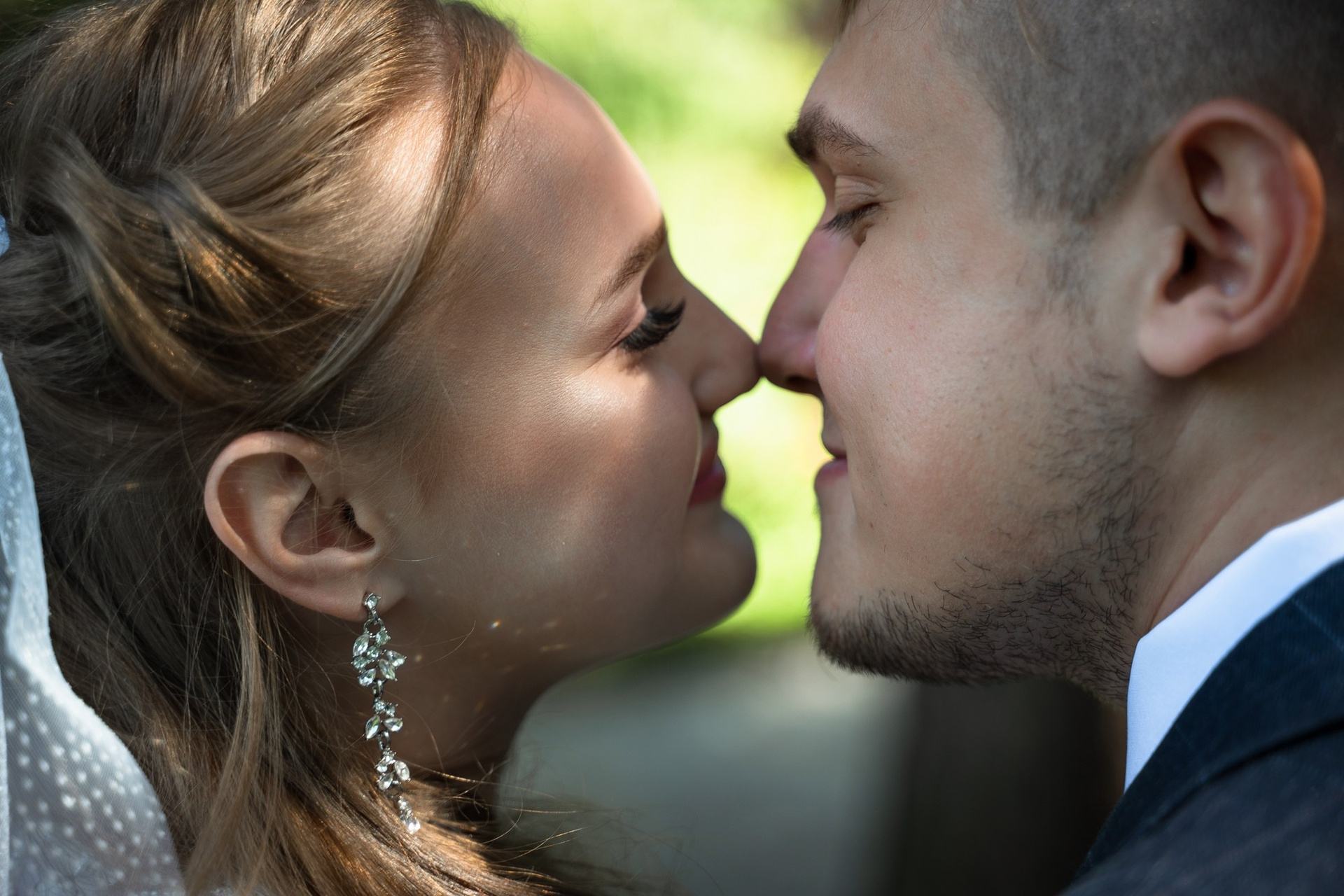Свадебная фотосъёмка из двух блоков: сначала погуляли в зелени в дендропарке, а затем заехали в студию.