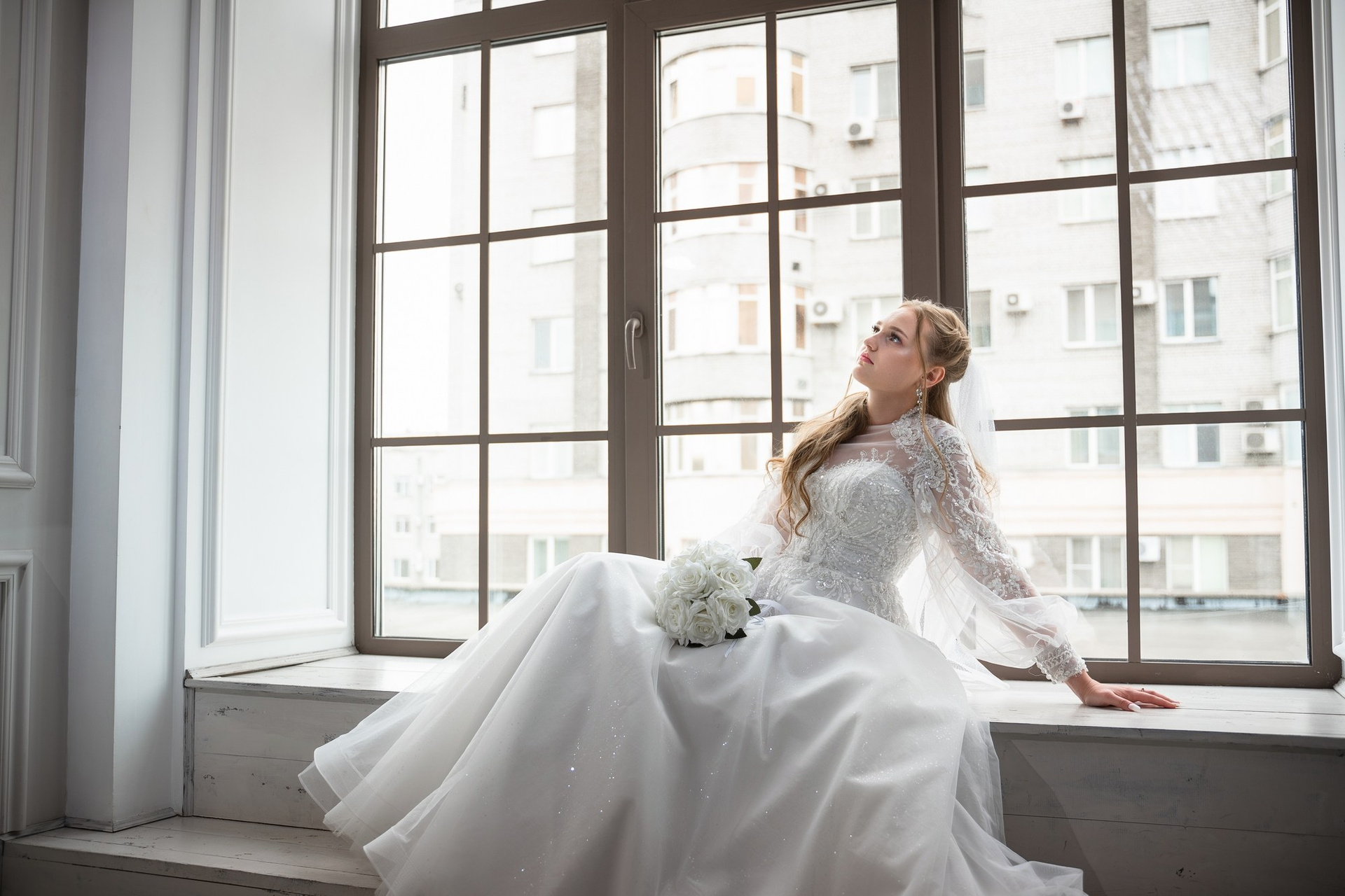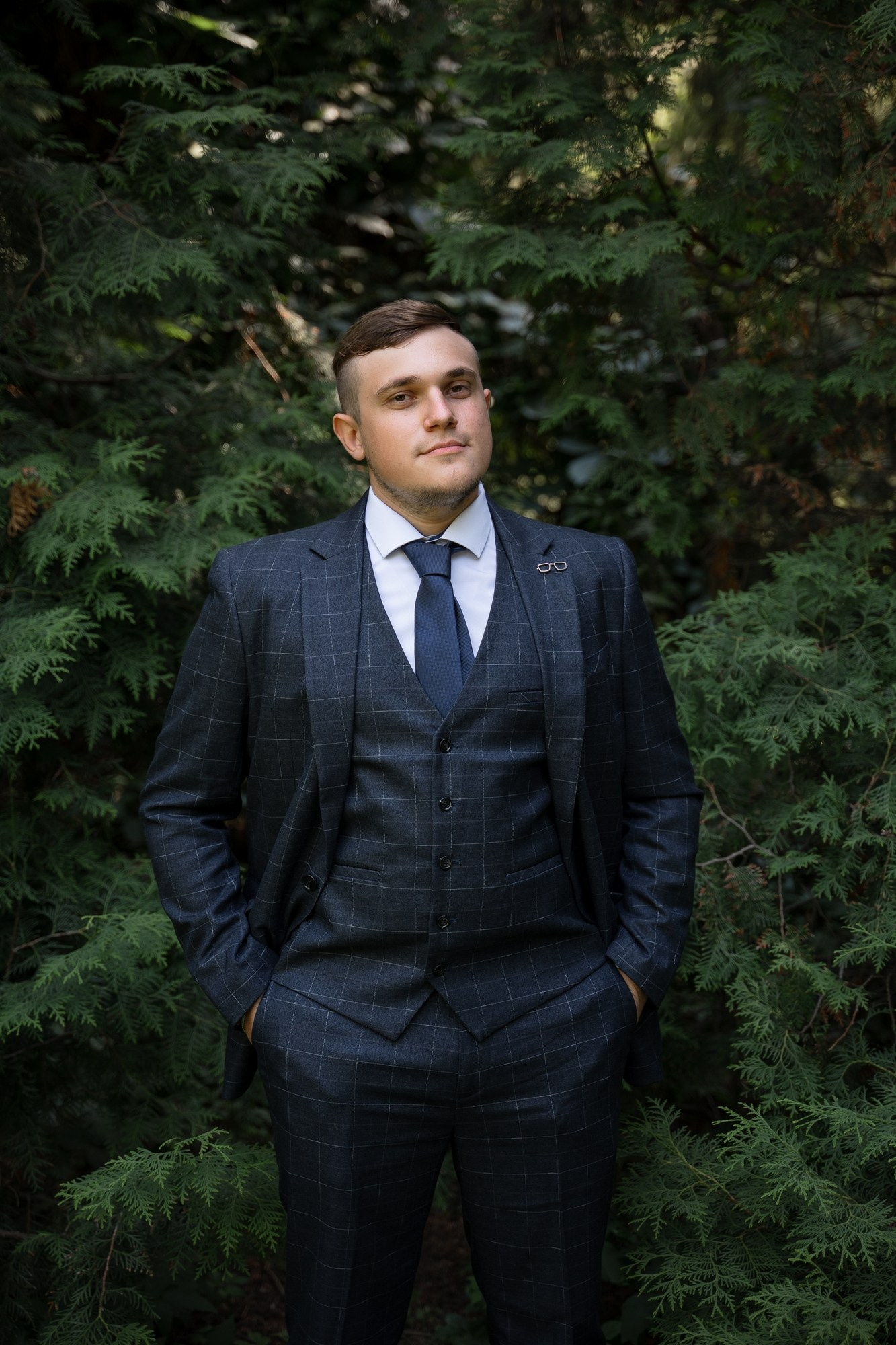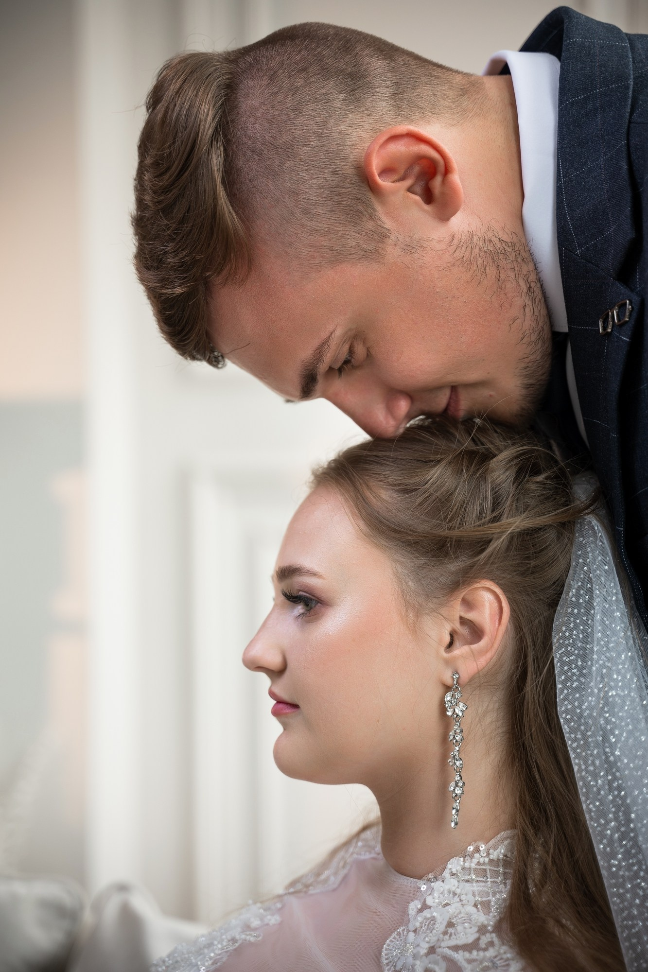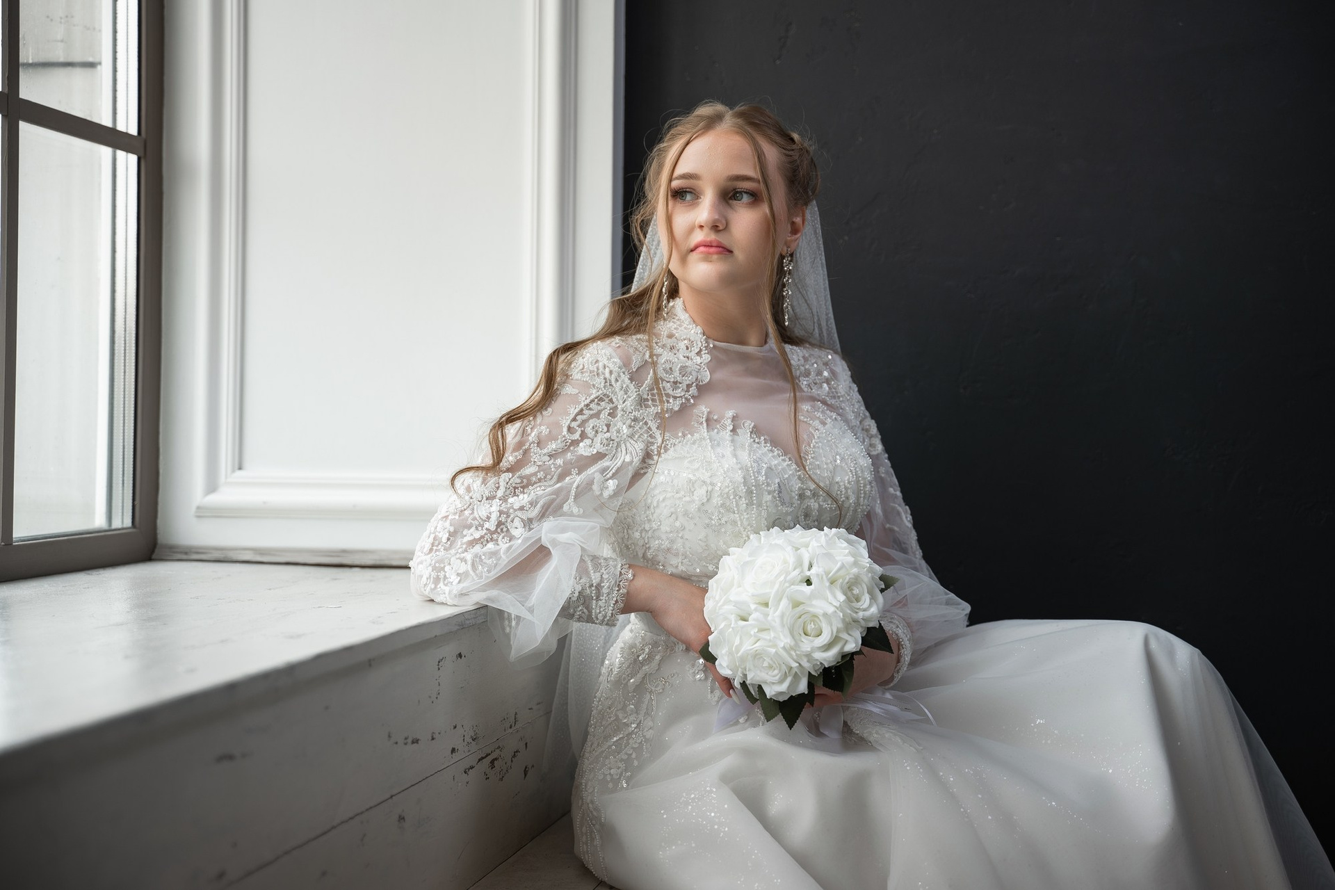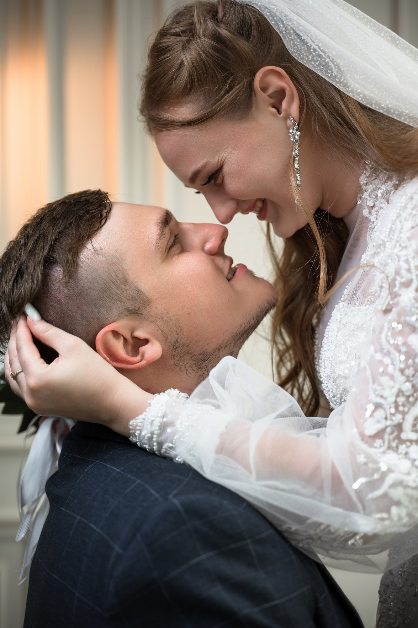 Свадебная фотосъёмка из двух блоков: сначала погуляли в зелени в дендропарке, а затем заехали в студию.